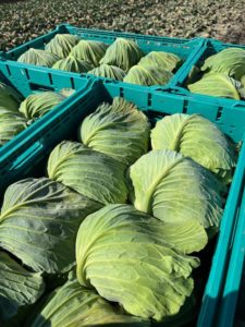 乾燥の影響で生育が止まっておりました越冬キャベツも水分が入り